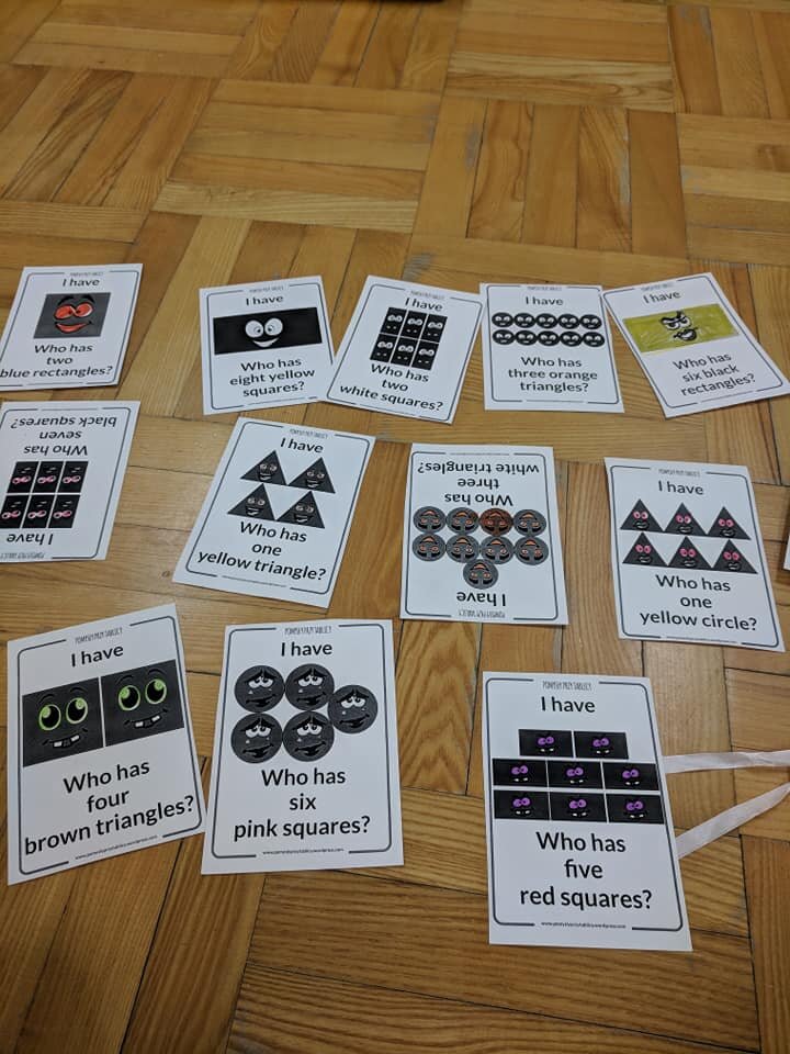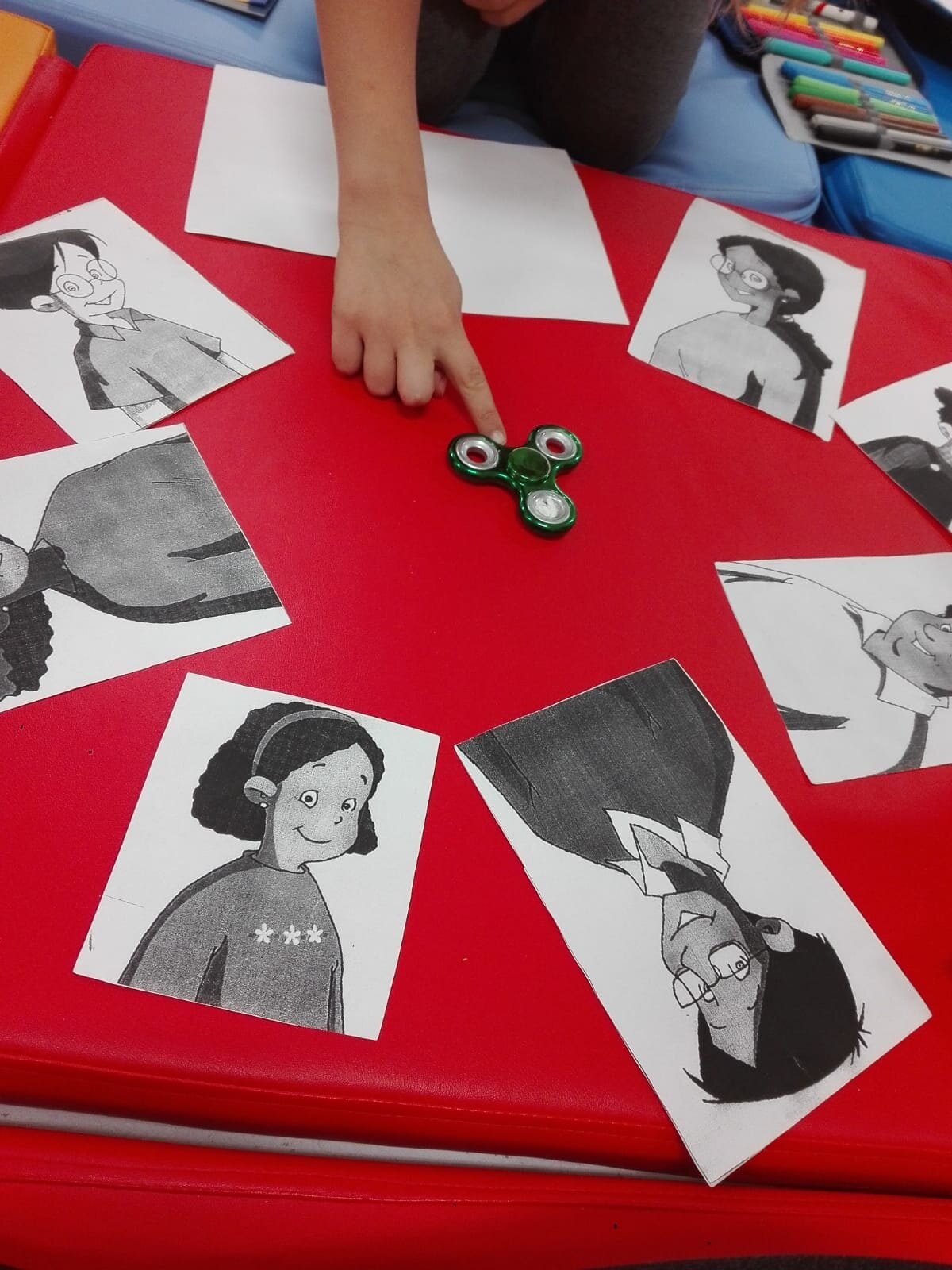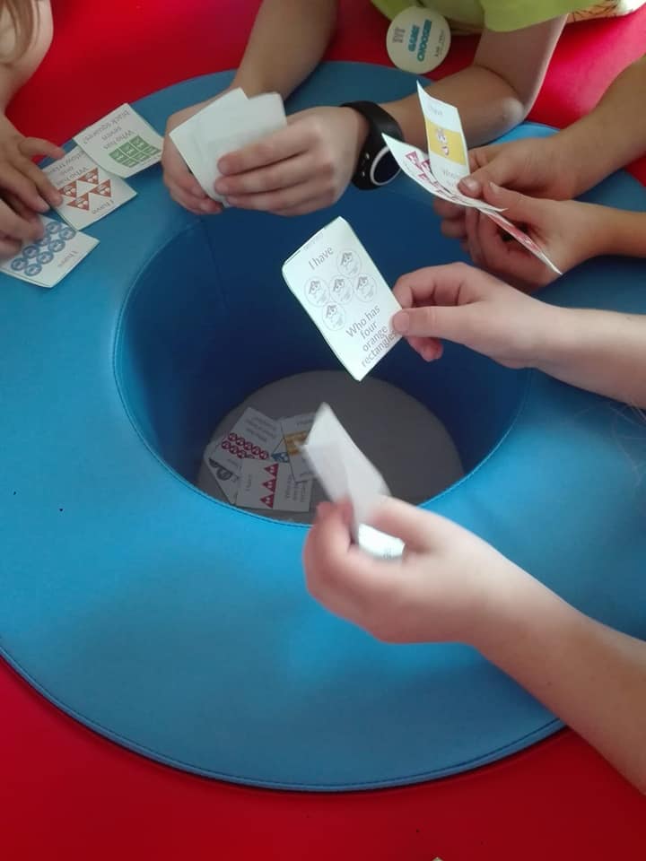 podobnie, jak packa na muchy, fidget spinner, kolorowe karteczki z nazwami części ciała, karty do gry.